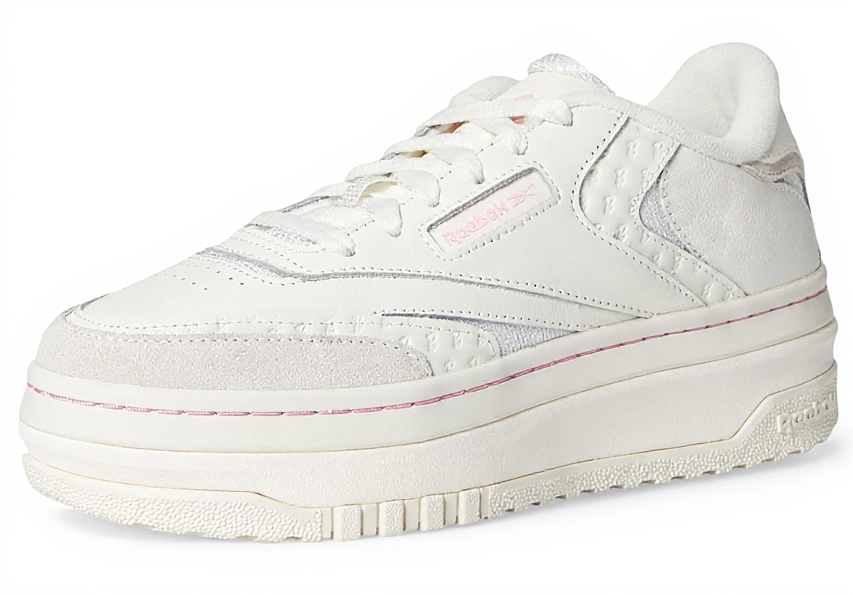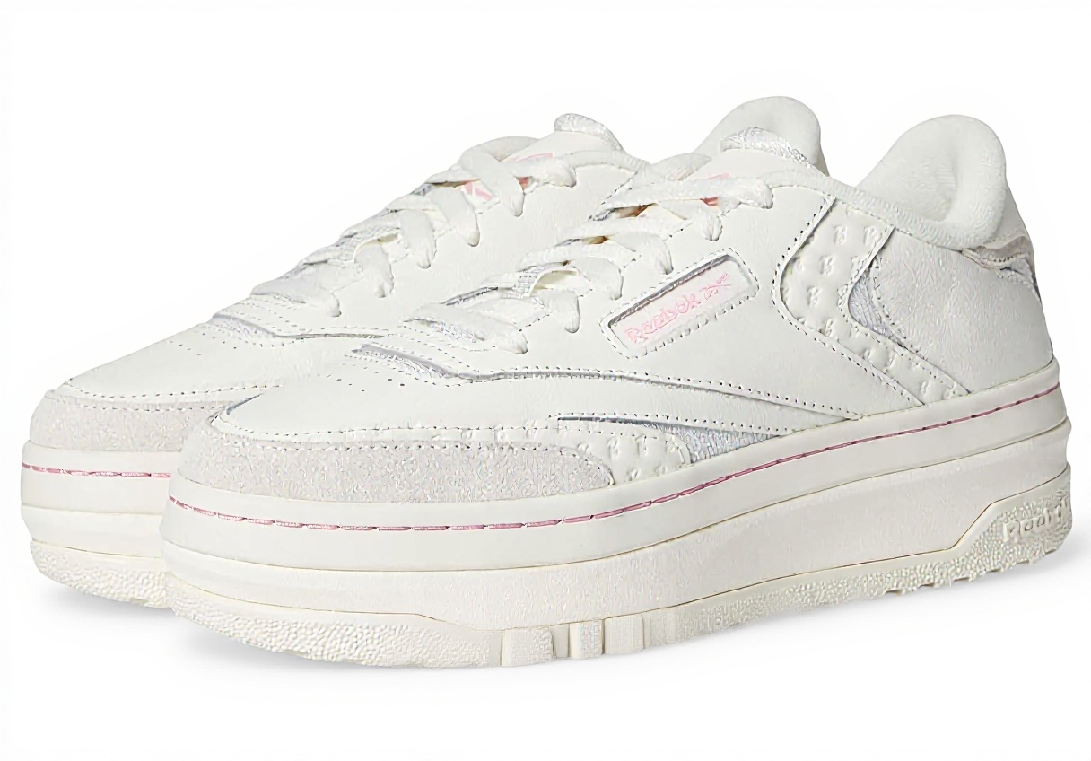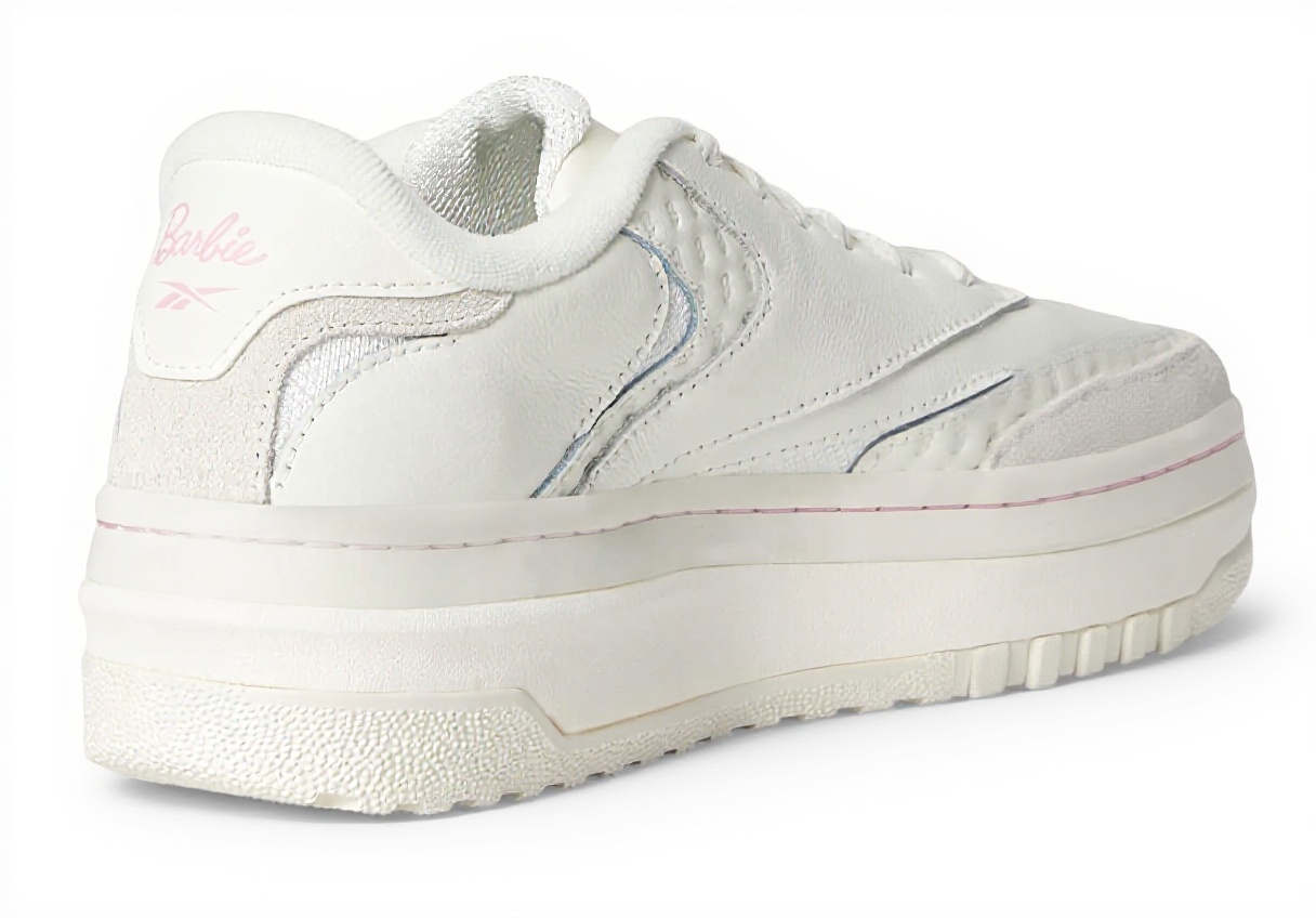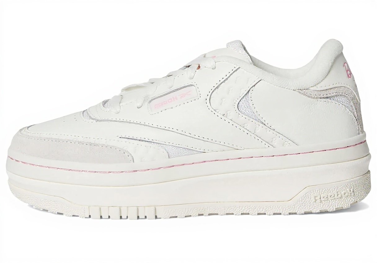 Le Reebok Club C Extra sono sneaker donna che combinano design classico e materiali pregiati. Presentano sovrapposizioni in pelle scamosciata di alta qualità e una base liscia in nappa, con dettagli come la stampa Barbie “B” su pelle goffrata e satinata, accenti a rete lucidi e un’intersuola con plateau per un comfort duraturo.